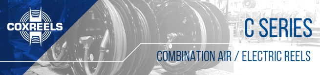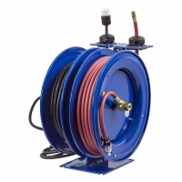 COXREELS® C Series "Combination" spring driven hose reels are a combination of two hose reels in one compact assembly. They are perfect for applications in which two sources are needed to get the job done when space is a critical factor. The single mounting base creates stability and adds to the convenience of one mounting pattern. This series is also available in dual hose combinations.